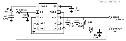 The ISL97656 is a high frequency, high efficiency step-up voltage regulator operated at constant frequency PWM mode. With an internal 4. 0A, 120mΩ MOSFET, it can deliver up to 2A output current at over 90% efficiency. The selectable 640kHz and 1. 2MHz allows smaller inductors and faster transient response. An external compensation pin gives the user greater flexibility in setting frequency compensation allowing the use of low ESR Ceramic output capacitors. When shut down, it draws 1µA of current and can operate down to 2. 3V input supply. These features, along with 1. 2MHz switching frequency, make it an ideal device for portable equipment and TFT-LCD displays. The ISL97656 is available in a 10 Ld TDFN package with a maximum height of 1. 1mm. The device is specified for operation over the full -40°C to +85°C temperature range.