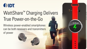 IDT® WattShare wireless charging technology is a compelling solution for OEMs who continually strive to make their smartphones -- and ecosystems of associated smartwatches, ear buds and other devices -- more convenient and capable for consumers. WattShare enables smartphones to deliver up to 7W of power when charging other devices, as well as to receive charges of 15W or higher.