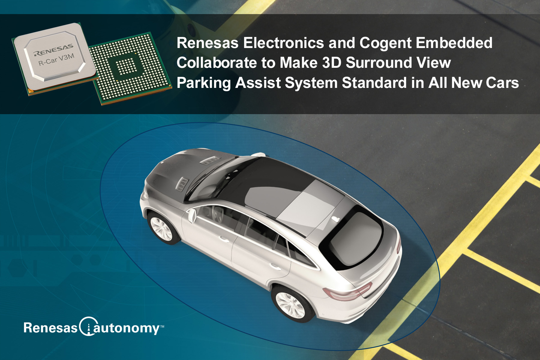 2017年9月14日,日本东京,加利福尼亚州圣何塞讯 ― 全球领先的半导体解决方案供应商瑞萨电子株式会社(TSE:6723)与汽车行业领先的嵌入式软件供应商Cogent Embedded公司,今日宣布两家公司共同开发了一款3D全景可视解决方案,在停车或低速行驶时为驾驶员提供协助。新解决方案专为入门级和中级车型的泊车辅助系统而设计,它基于R-Car V3M SoC,该SoC自带专用图像渲染单元(IMR), 在瑞萨参考板上实现了可定制的3D全景可视化软件。该解决方案无需使用GPU,可帮助系统开发人员以低成本开发节能全景环视泊车辅助系统。Cogent Embedded也可提供按需定制服务,使系统开发人员能够专注于开发应用软件以实现系统的差异化。