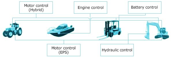 For the engines used for agricultural machines, construction machines, industrial machines, railway, etc., high-speed and high-accuracy control by microcontrollers is required even under a strict environment of low and high temperatures to enhance fuel consumption and reduce CO2 emission.