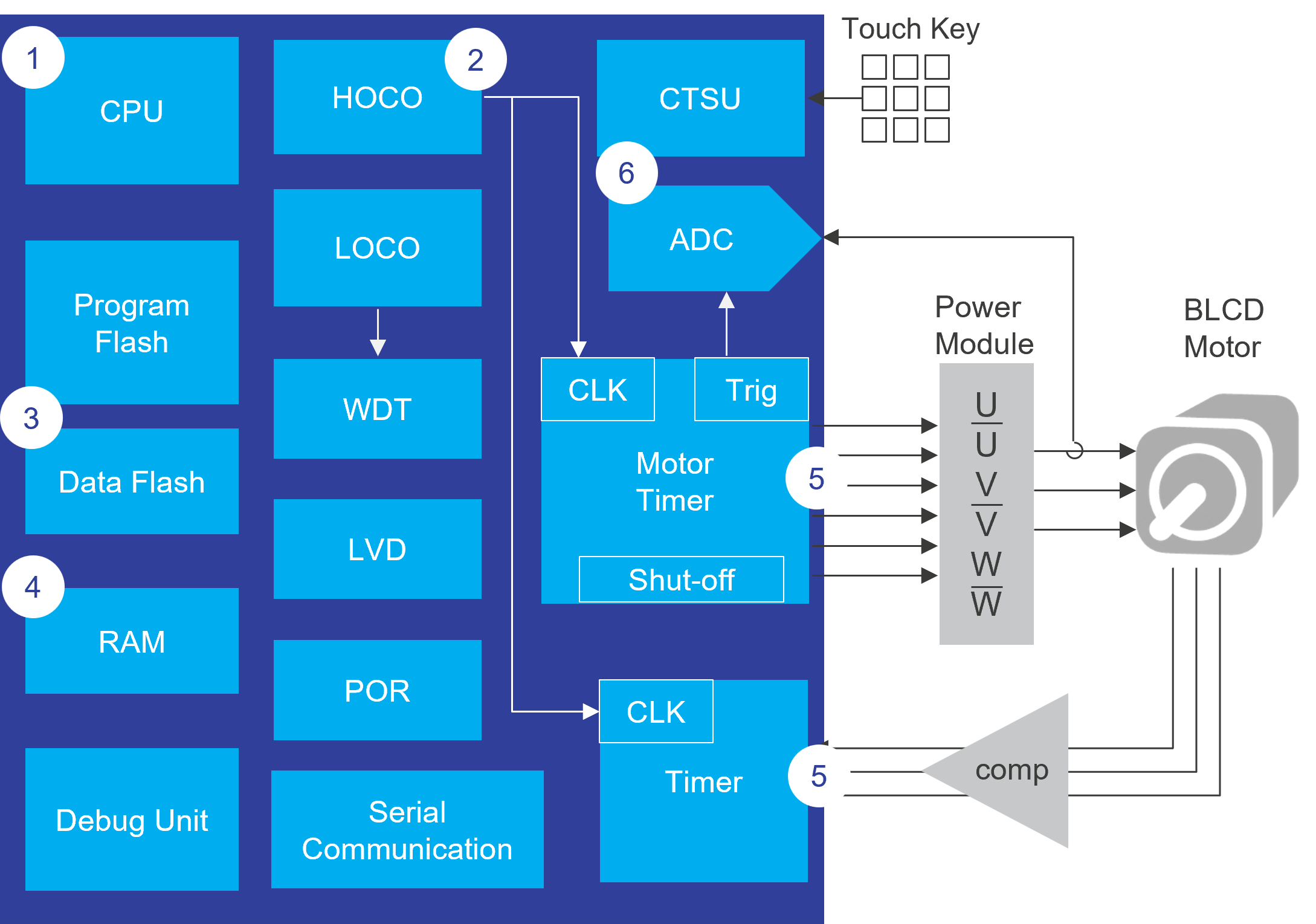 本解决方案涵盖了RL78 系列、RX100/200/600 系列和 RA2/RA4/RA6 系列等瑞萨电子的各系列微控制器。