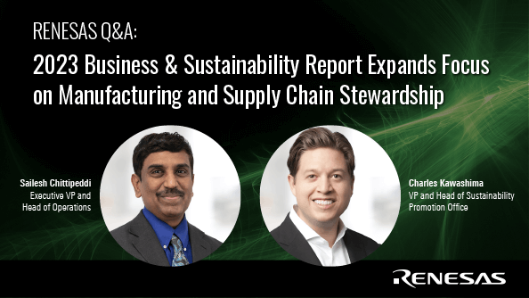 近日,Charles Kawashima,Renesas Vice President、新任Head of the Sustainability Promotion Office, 与Sailesh Chittipeddi博士,Executive Vice President and Head of Operations for Renesas,就“可持续发展目标”进行了交流,Chittipeddi博士负责全球内外部制造业务,涵盖供应链、采购及流程、封装和测试平台开发等多个板块。