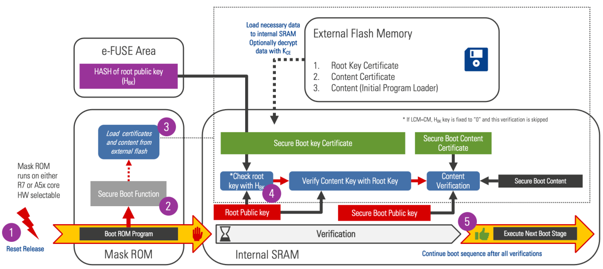 - The starting point of this verification process is the mask ROM of the R-Car device as the “Root of Trust”