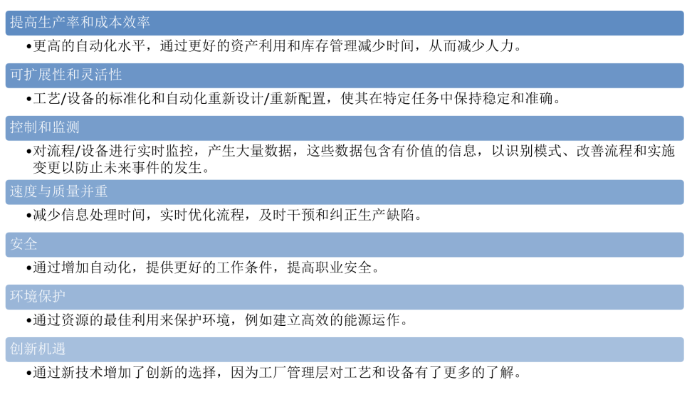 从提高产量和质量到相关的安全性和成本,工业4.0为日常工业问题创造了解决方案。它展示了资产利用和资源能源优化的各种范例。图3总结了一些可以通过工业4.0实现的主要附加功能。