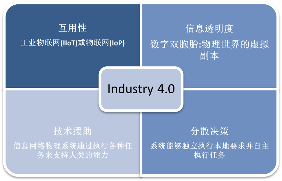 工业4.0是下一代工业自动化解决方案,允许关联机构优化他们的工厂,通过工业设备的互联和不断增加的计算来增强他们的生产效率的生产流程。第四次工业革命的概念是21世纪技术、工业、社会模式和流程的快速变化,以及它们的互联性和智能自动化的增加所产生的。这是工业发展的新篇章,其动力来自与第一、第二和第三次工业革命相当的非凡技术进步。这些进步正在将物理、数字和生活世界融合在一起,既创造了巨大的前景,也带来了潜在的危险。这不仅仅是技术驱动的变革;这是一个帮助利益相关者利用融合技术创造一个包容的、以人为本的未来以实现发展的可持续性。互操作性、信息透明、技术辅助、去中心化决策是建立工业4.0的基本原则。图1提供了在识别和实施工业4.0方面的解析。物联网促进了设备之间的相互通信,从而创建了物理世界数据的虚拟副本。这有助于操作人员进行可视化/分析所涉及的相关过程,并最终自己做出决定,使执行任务自动化成为可能。
