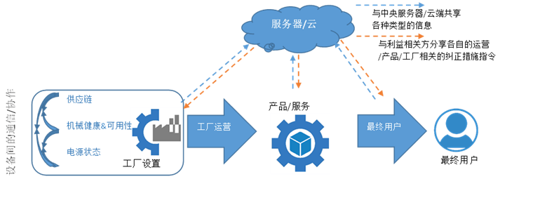 图5展示了一个典型的工业4.0用例,涵盖不同的设备、能源和专用传感器。在这种情况下,供应链配备了对不同设备以及整个工厂运营的实时跟踪和监测。所有单位通过中央云服务器共享信息,促进资源利用、能源和流程优化方面的运作,同时改善最终产品/服务。在整个操作过程中获得的大量数据提供了以自动化方式在每个层面上得到了其功能性的增强。然而,自动化的成功将需要对流程的充分理解,以及操作技术、信息技术和综合数据分析方法的有效融合。