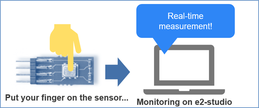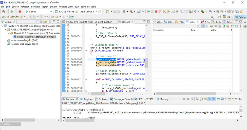 Very conveniently, the temperature and humidity sensor values can be monitored on e2-studio.