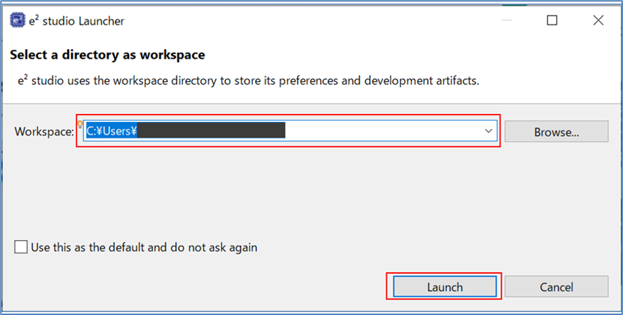 The installed e2-studio start up. Specify any workspace folder and start it up.
