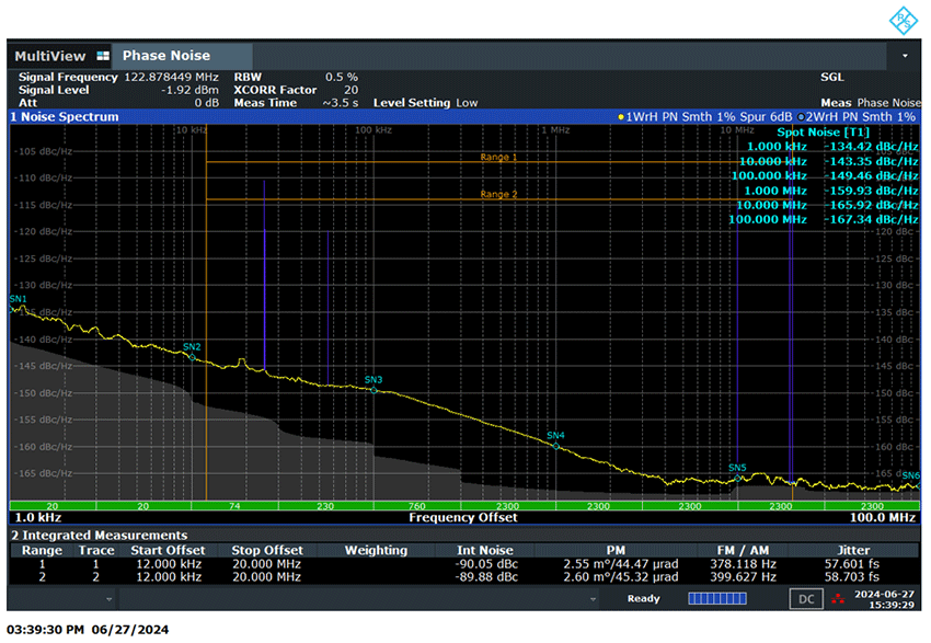 224G PAM4 SerDes 的时钟要求非常严格,而 FemtoClock 3W 可以满足这些要求。 224G PAM4 的抖动要求低于 25fs(12kHz 至 20MHz),在4MHz HPF条件下, FemtoClock 3W 有充分的裕量满足该要求。