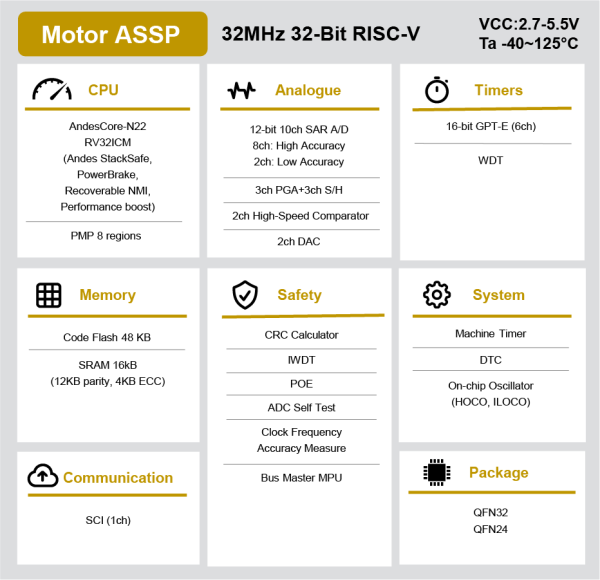 An overview of the RISC-V ASSP, specifically optimized for advanced motor control systems. Alongside ecosystem partners, this provides a complete, production-ready motor control system solution. Visit the RISC-V ASSP page for more details.