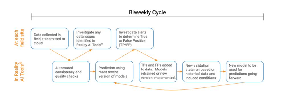 When doing extended field testing, you may want to run a similar process. Here the objective is also to ensure that collected data is high quality and that ML models can be continuously improved. When error rates are within acceptable limits for the use case, testing is complete.