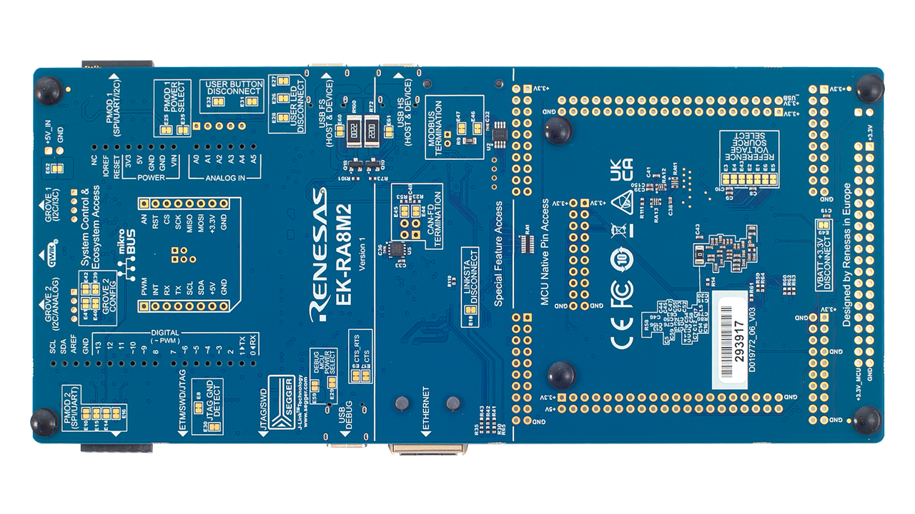 EK-RA8M2 评估套件用于评估 RA8M2 MCU 功能,并使用瑞萨电子的灵活配置软件包 (FSP) 和 e2 studio IDE 开发嵌入式系统应用程序。 用户可以利用丰富的板载功能和选择流行的生态系统附加组件来实现广泛的工业、物联网 (IoT) 和通用应用。 此外,还提供了一系列示例项目,帮助用户快速评估关键外设并加速概念验证开发。