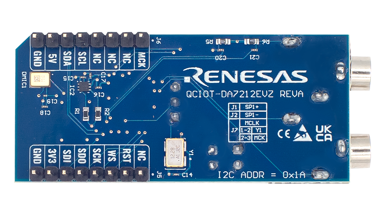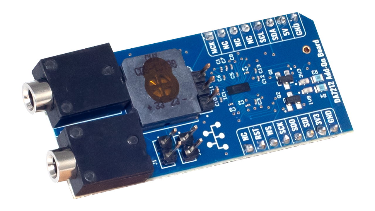 The QCIOT-DA7212EVZ Click Board™ demonstrates the functionality and performance of the DA7212. The DA7212 is an ultra-low power audio codec designed for portable audio devices. Comprehensive analog mixing and bypass paths to the output drivers are available.