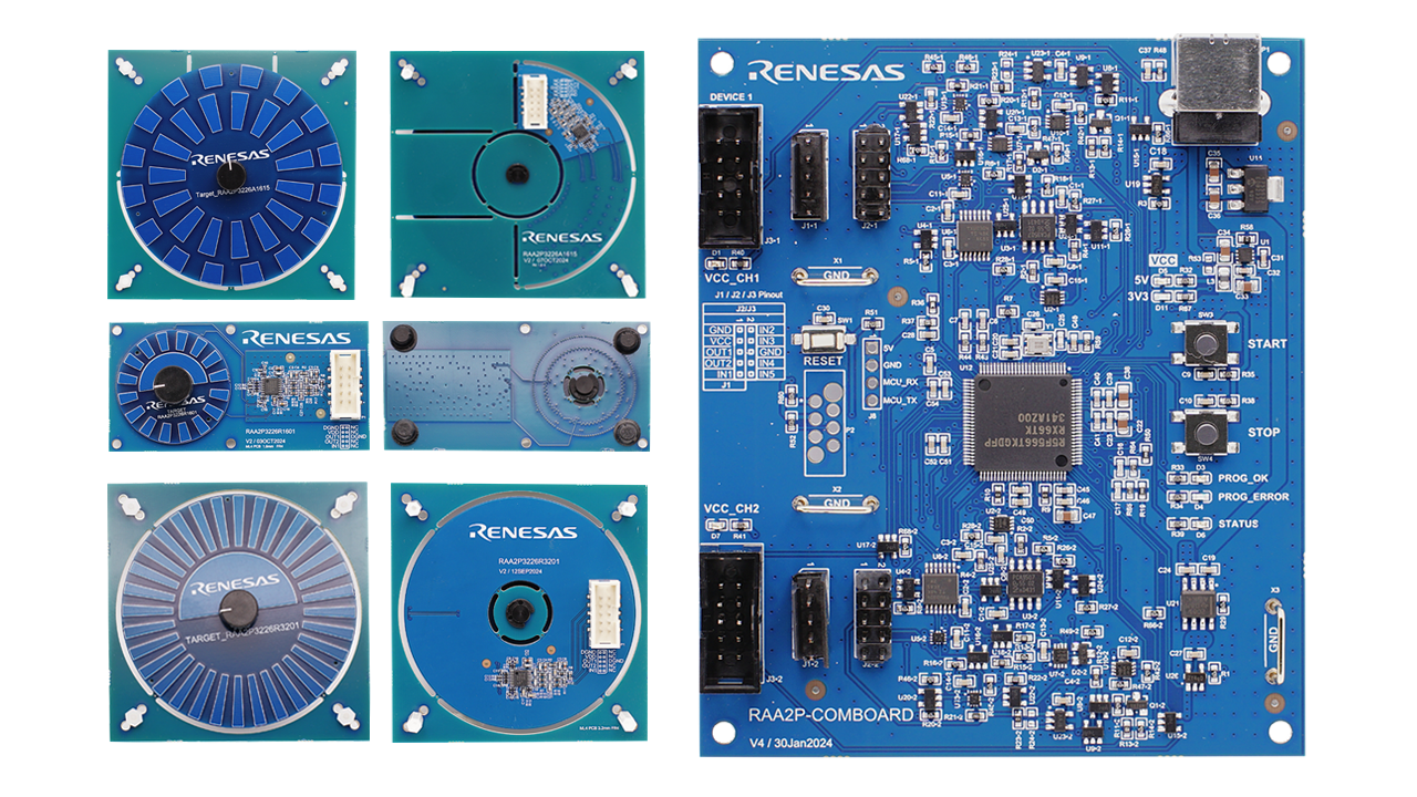 RTKA2P3226S00000BE 套件采用 RAA2P3226 无磁电感式位置传感器 IC,配备双线圈传感元件,专为工业场景中的绝对旋转、线性或弧形位置感测而设计。