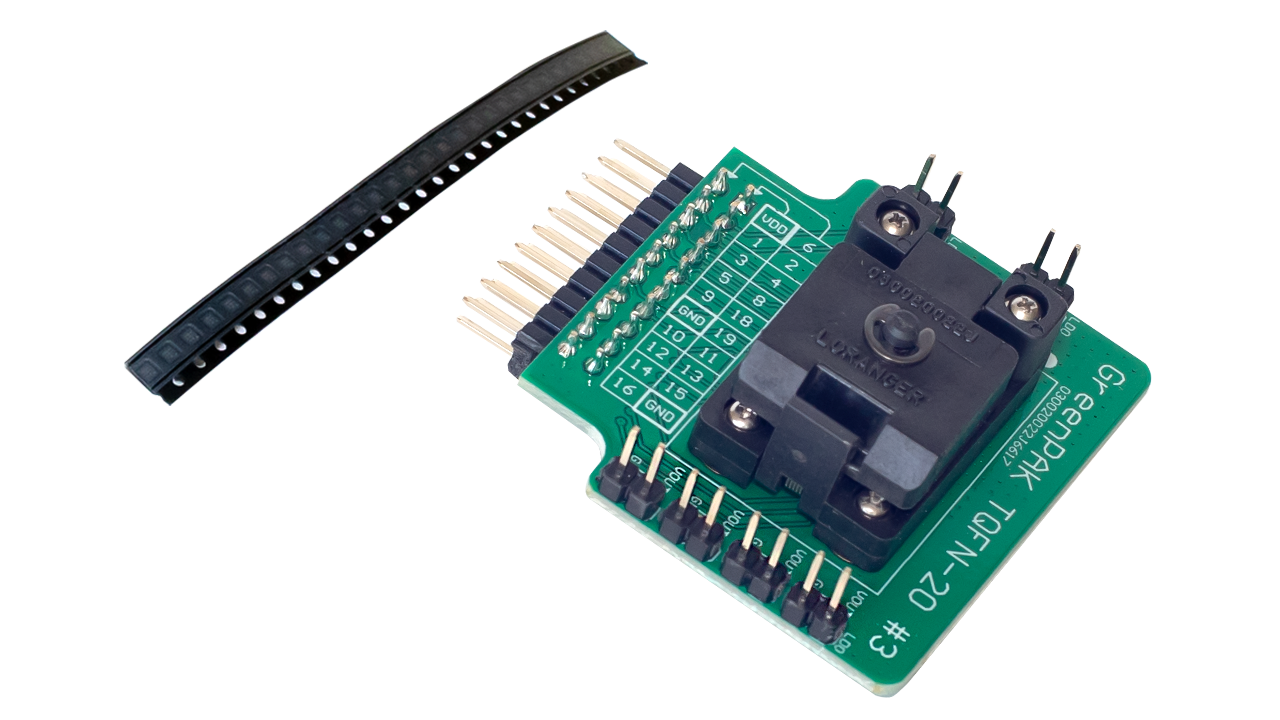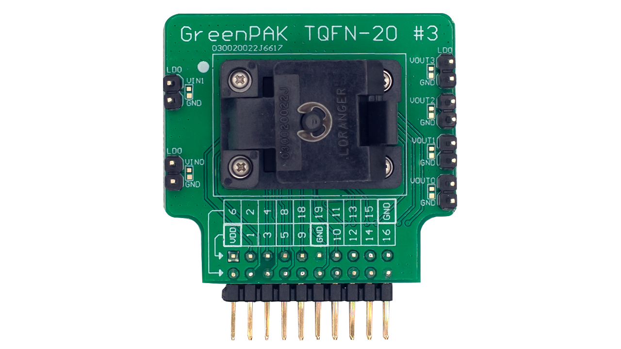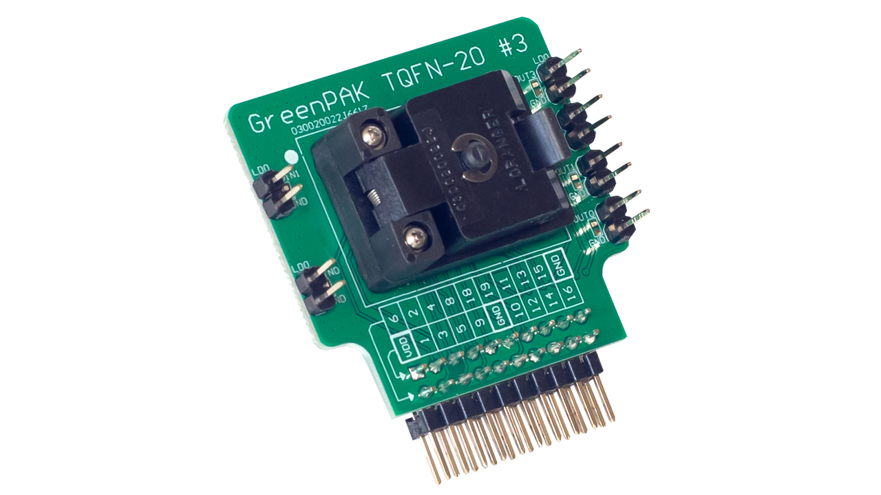 - TQFN-14 socket for the SLG46583 GreenPAK™ programmable mixed-signal matrix