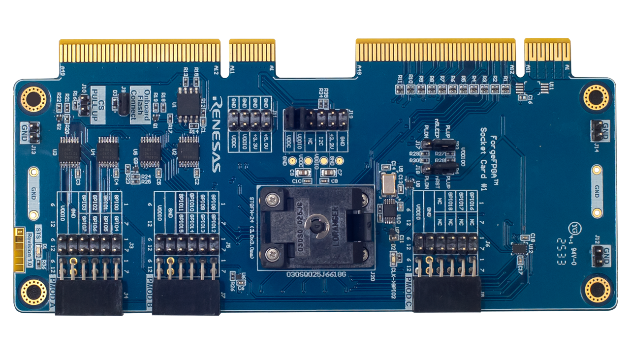 ForgeFPGA 插槽卡 #1 是一款专为 ForgeFPGA 集成电路的仿真和原型设计而制作的开发板。 该插槽卡实现了 ForgeFPGA 芯片引脚与 Go Configure 开发板之间的连接。 该板可用于制作具有不同启动模式的设计原型。 该插槽卡支持 Pmod 标准,因此能够连接不同的 Pmod 适配器。