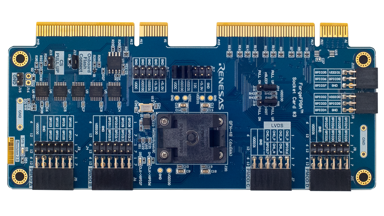 ForgeFPGA 插槽卡 #3 是一款专为 ForgeFPGA 集成电路的仿真和原型设计而制作的开发板。 该插槽卡实现了 ForgeFPGA 芯片引脚与 Go Configure 开发板之间的连接。 该板可用于制作具有不同启动模式的设计原型。 该插槽卡支持 Pmod 标准,因此能够连接不同的 Pmod 适配器。