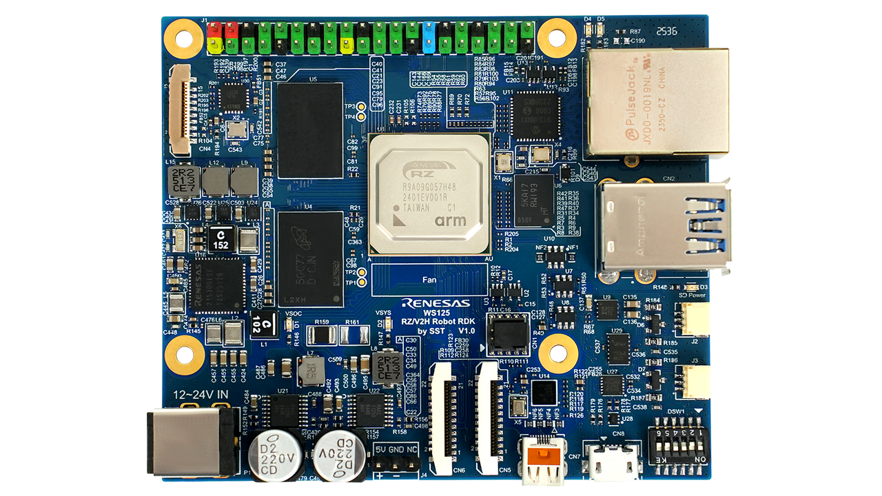 The Robotic Development Kit (RDK) helps to accelerate high‑performance AI vision and robotics designs using our Arm®‑based RZ/V2H microprocessor (MPU). This kit is designed to tackle demanding AI image‑processing workloads with up to 80 TOPS (sparse) AI inference performance, while still giving the flexibility to run multiple operating systems on a multi‑core CPU. By combining powerful AI acceleration with rich connectivity, we enable rapid prototyping, system bring‑up, and smooth integration into robotic platforms.