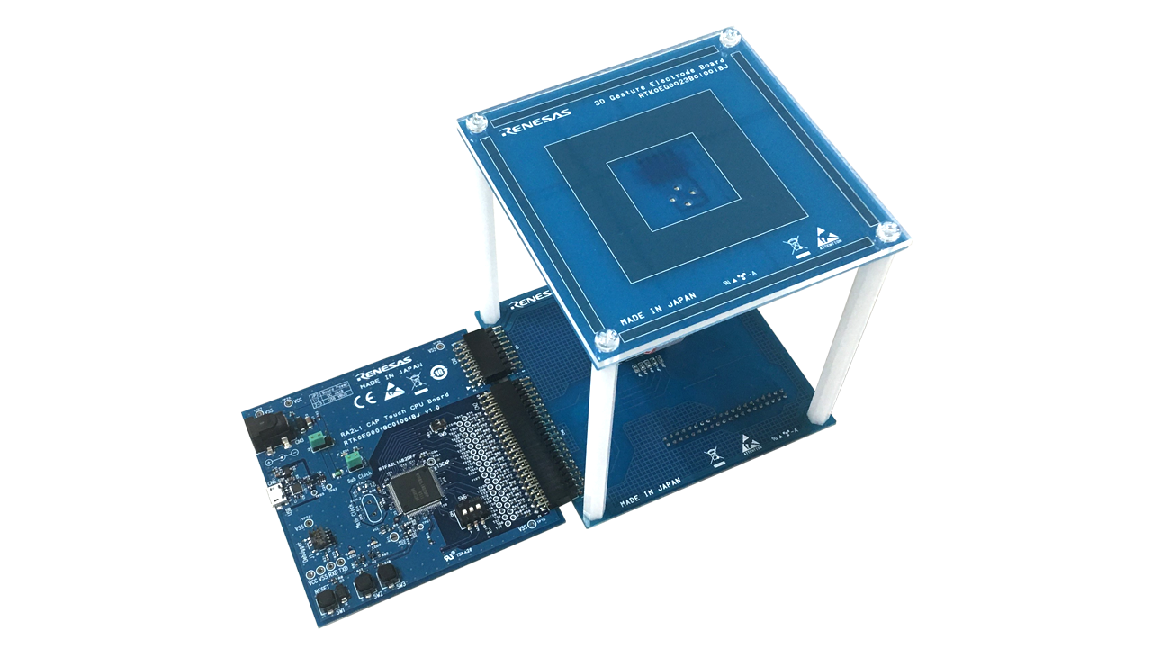 3D 手势参考设计是一种检测手势的解决方案,可利用瑞萨电子的电容式触摸解决方案检测手在空间中的位置(x、y 和 z 坐标)。 手在面板表面上方 200 毫米处的位置被转换为 x、y 和 z 坐标。 此外,由于可以高速监测坐标数据,因此可以使用手势(上下、左右、前后)和简单的模式识别来操作设备。