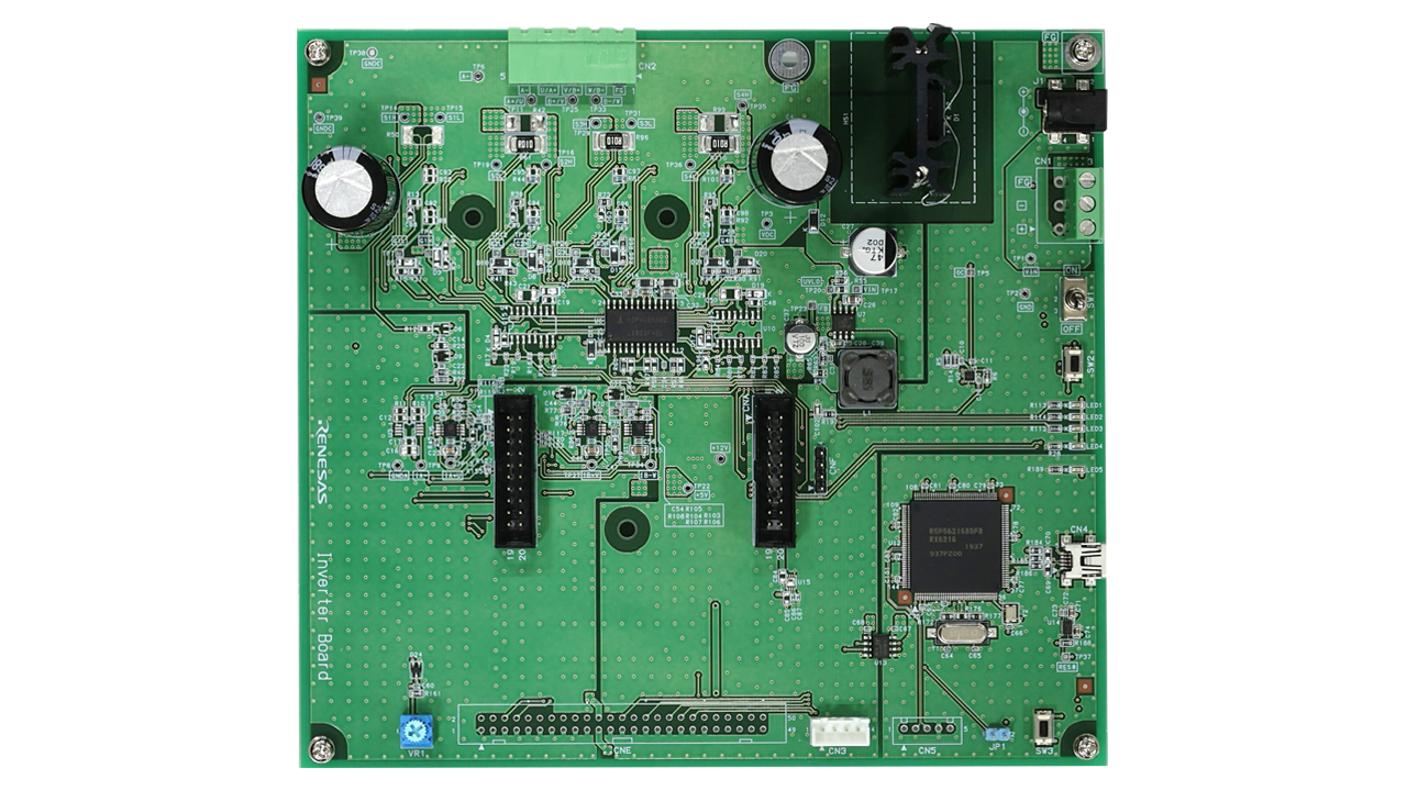 The Multiple Motor Control reference design can be used for controlling three or four motors with a single microcontroller (MCU). The RX72T 32-bit MCU used in this design has extensive timer functions and can handle PWM outputs and encoder signal inputs for three motors. With this single MCU, position control of three motors (encoder vector control) and speed control of four motors (sensorless vector control) are made possible. This eliminates the need for a control MCU for each motor, enabling the miniaturization and space-saving of the board.