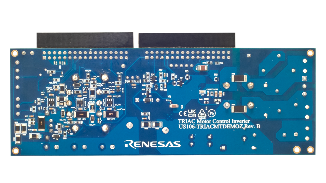 This TRIAC motor control reference design is built on a proven TRIAC‑based motor‑control architecture. It combines the RA2E1 32‑bit Arm® Cortex®‑M23 microcontroller (MCU) or the RX231 32‑bit MCU with phase‑angle firing driven by a zero‑cross detector to regulate compressor and fan speed while minimizing torque ripple and electromagnetic interference (EMI).