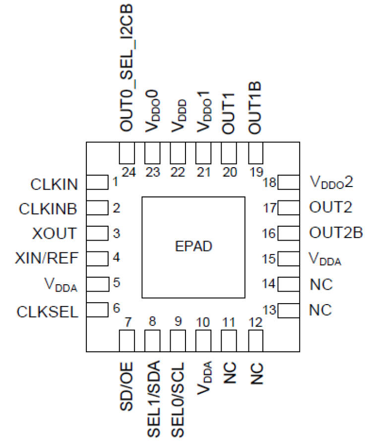 - LVDS, LVPECL, HCSL differential clock input (CLKIN, CLKINB) – 1MHz to 350MHz