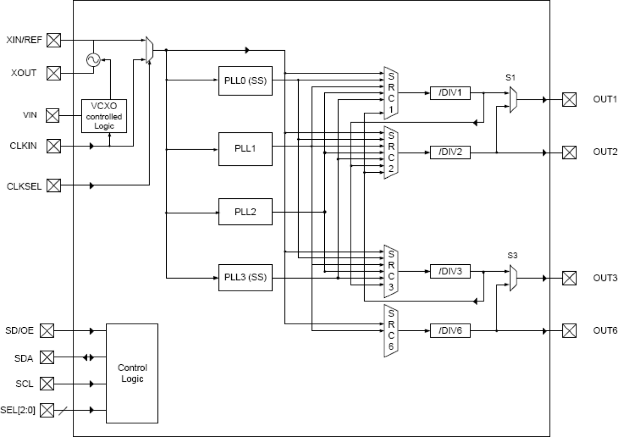 - Two of the PLLs support spread spectrum generation capability
