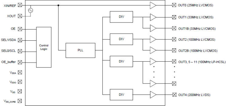 - PCIe Gen 1, 2, 3 compliant clock capability