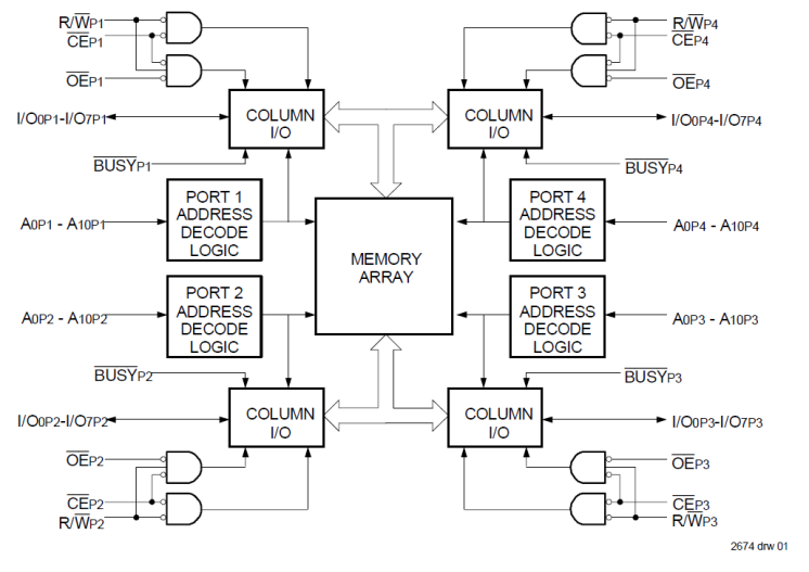 - Versatile control for write-inhibit: separate BUSY input to control write-inhibit for each of the four ports