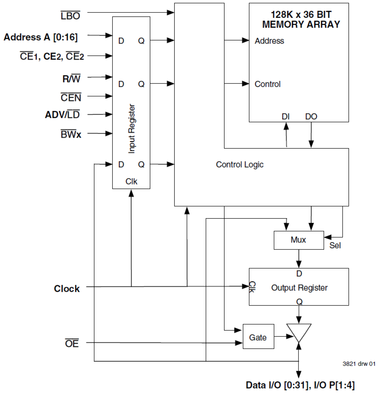 - Positive clock-edge triggered address, data, and control signal registers for fully pipelined applications
