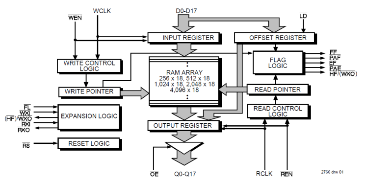 - Programmable Almost-Empty and Almost-Full flags with default settings