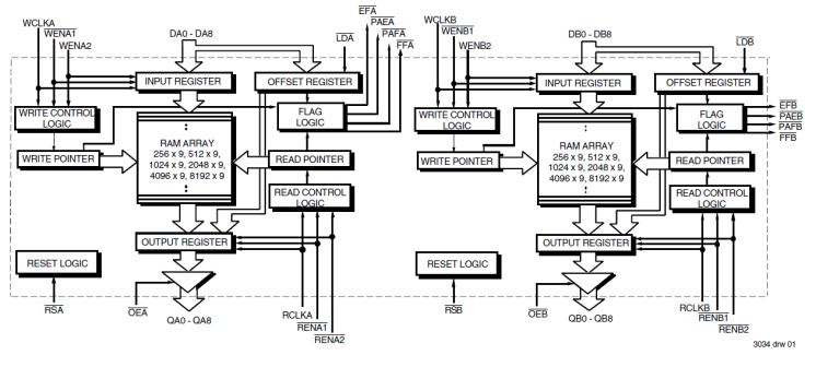 - Separate Empty, Full, Programmable Almost-Empty and Almost- Full flags for each FIFO