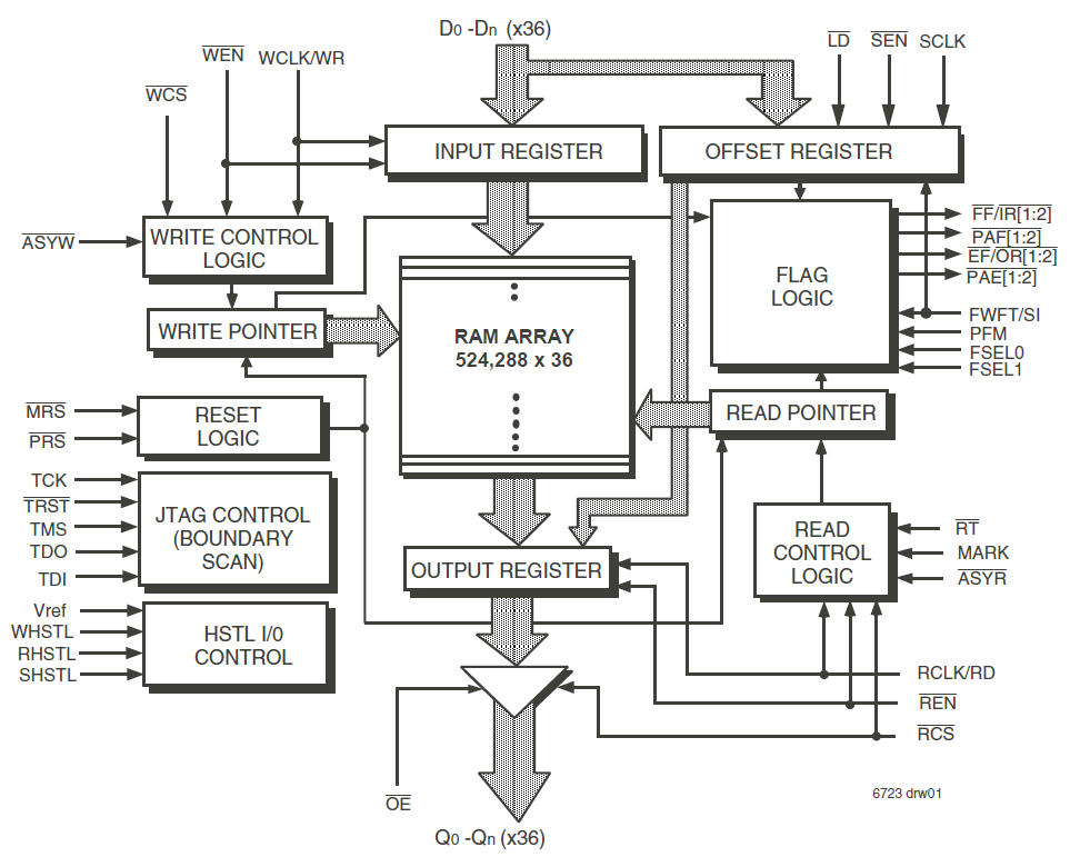The 72T36135M is a 512K x 36 TeraSync 2.5V FIFO memory with clocked read and write controls and a wide extended x 36 bus to allow ample data flow. TeraSync FIFOs are particularly appropriate for network, video, telecommunications, data communications and other applications that need to buffer large amounts of data at very high performance. There are two possible timing modes of operation with these devices: IDT Standard mode and First Word Fall Through mode.