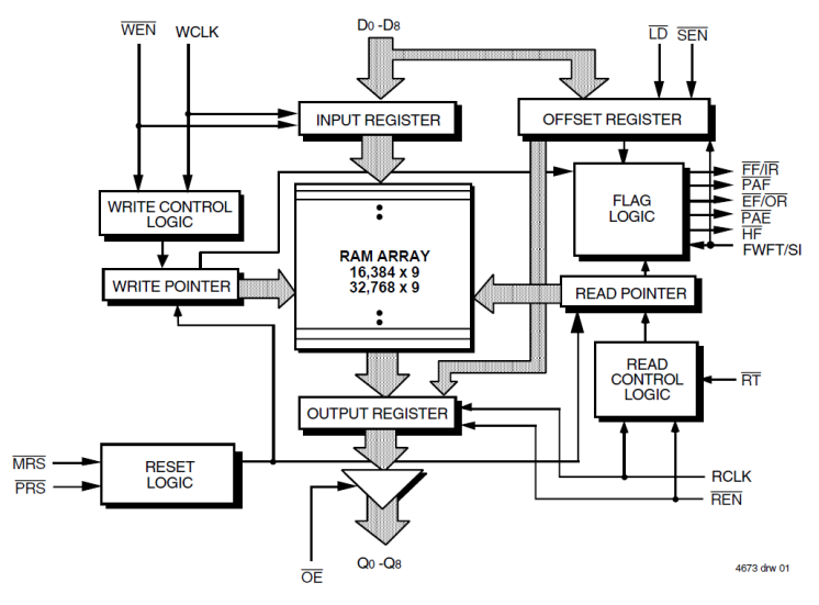 - Independent Read and Write clocks (permit reading and writing simultaneously)