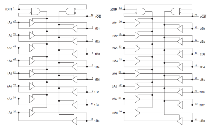 The 74ALVC16245 16-bit bus transceiver is designed for asynchronous communication between data buses and can be used as two 8-bit transceivers or one 16-bit transceiver. It allows data transmission between the buses depending on the logic level at the direction-control (DIR) input. This driver is capable of driving a moderate to heavy load while maintaining speed performance. The 74ALVC16245 operates at -40C to +85C