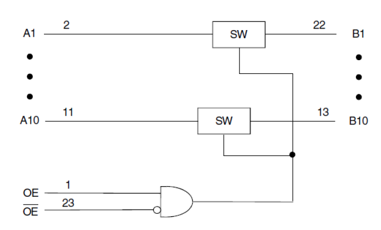 The 74CBTLV3862 10-bit bus switch with active high/low enables, provides high-speed bus switching with low on-state resistance of the switch allowing connections to be made with minimal propagation delay. The 74CBTLV3862 operates at -40C to +85C