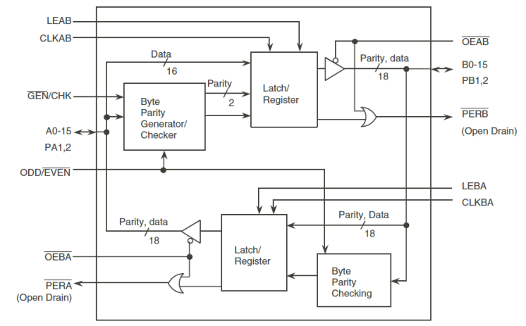 The 74FCT162511T 16-bit high-speed, low-power registered/latched transceiver with parity combines D-type latches and D-type flip-flops to allow data flow in transparent, latched, or clocked modes. The device has a parity generator/ checker in the A-to-B direction and a parity checker in the B-to-A direction. The 74FCT162511T operates at -40C to +85C