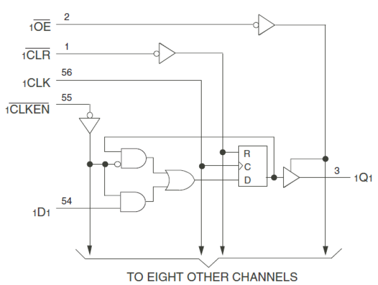 The 74FCT162823T 18-bit high-speed, low-power bus interface register with clock enable (xCLKEN) and clear (xCLR) controls are ideal for parity bus interfacing in high-performance synchronous systems. The device can operate as two 9-bit registers or one 18-bit register. The 74FCT162823T offers low ground bounce, minimal undershoot, and controlled output fall times – reducing the need for external series terminating resistors. The 74FCT162823T operates at -40 °C to +85 °C.