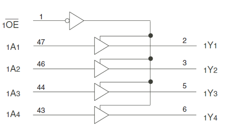 The 74FCT163244 16-bit high-speed, low-power buffer/line drivers offer bus/backplane interface capability with improved packing density. The three-state controls operate these devices in a Quad-Nibble, Dual-Byte, or single 16-bit word mode. The inputs can be driven from either 3.3V or 5V devices allowing the use of these devices as translators in a mixed 3.3V/5V supply system. Thus, the 74FCT163244 can be used as buffers to connect 5V components to a 3.3V bus. The device operates at -40 °C to +85 °C.