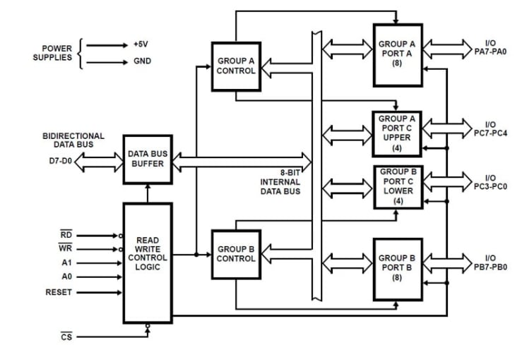 The Intersil 82C55A is a high performance CMOS version of the industry standard 8255A and is manufactured using a self-aligned silicon gate CMOS process (Scaled SAJI IV). It is a general purpose programmable I/O device which may be used with many different microprocessors. There are 24 I/O pins which may be individually programmed in 2 groups of 12 and used in 3 major modes of operation. The high performance and industry standard configuration of the 82C55A make it compatible with the 80C86, 80C88 and other microprocessors. Static CMOS circuit design insures low operating power. TTL compatibility over the full military temperature range and bus hold circuitry eliminate the need for pull-up resistors. The Intersil advanced SAJI process results in performance equal to or greater than existing functionally equivalent products at a fraction of the power.