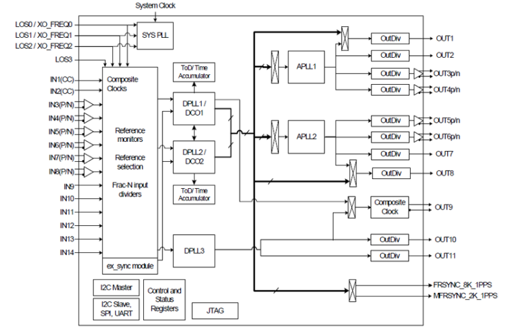 - System-wide precise 1PPS (Pulse Per Second) time of day alignment is supported with programmable input-to-input, input-to-output and output-to-output phase delays: sub-ns resolution