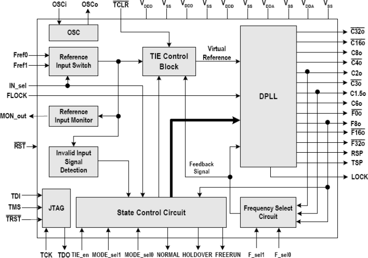 - Selectable input reference signal: 8 kHz, 1.544 MHz or 2.048 MHz