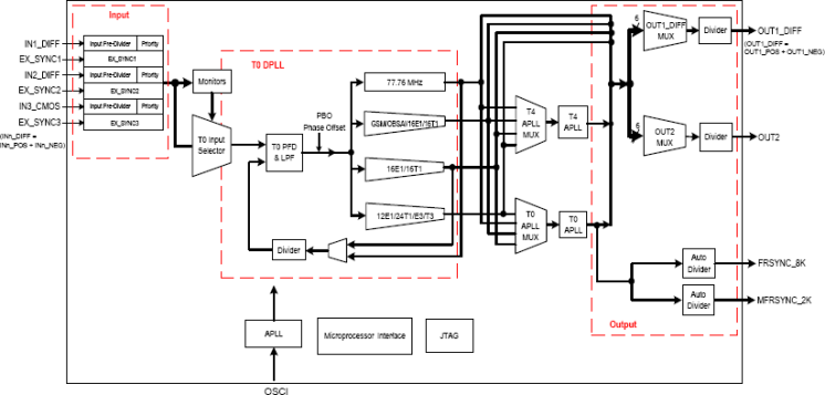- Supports PBO to minimize phase transients on T0 DPLL output to be no more than 0.61 ns