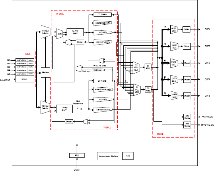 - T4 DPLL locks independently or locks to T0 DPLL