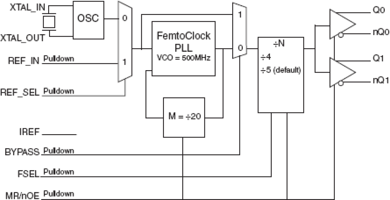- Selectable crystal oscillator interface, 25MHz, 18pF parallel resonant crystal or LVCMOS/LVTTL single-ended reference clock input