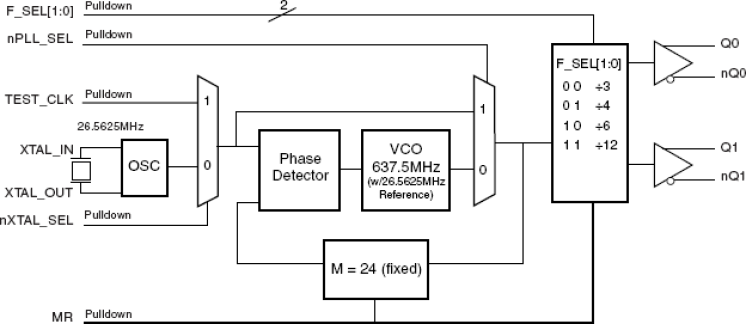 - Supports the following output frequencies: 212.5MHz, 187.5MHz, 159.375MHz, 106.25MHz and 53.125MHz