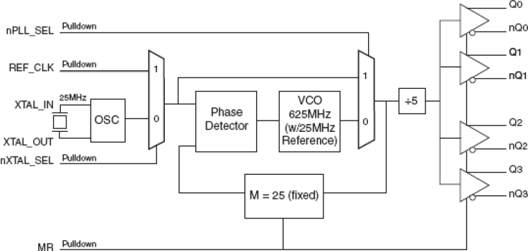 - Selectable crystal oscillator interface or LVCMOS/LVTTL single-ended input
