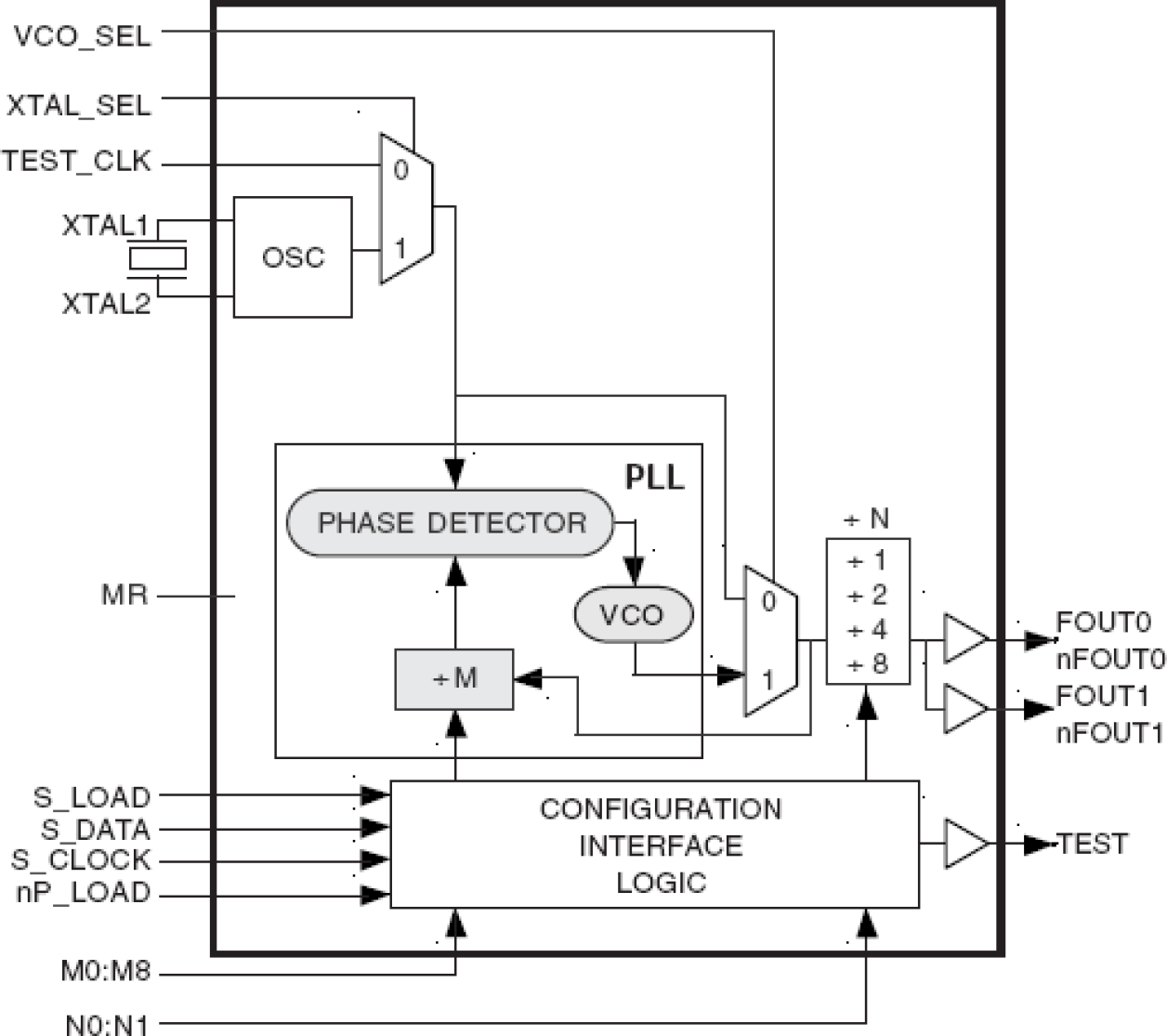 - Selectable crystal oscillator interface or LVCMOS/LVTTL TEST_CLK