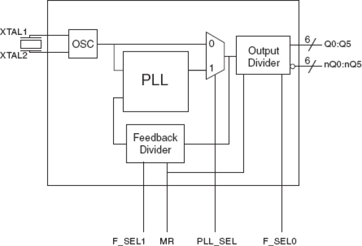 The 84325 is a Crystal-to-3.3 VLVPECL Frequency Synthesizer with Fanout Buffer. The output frequency can be programmed using frequency select pins. The low phase noise characteristics of the 84325 make it an ideal clock source for Fibre Channel 1, Fibre Channel 2, InfiniBand and Gigabit Ethernet applications.