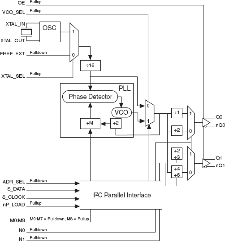 - Parallel or I2C interface for programming M and N dividers during power-up